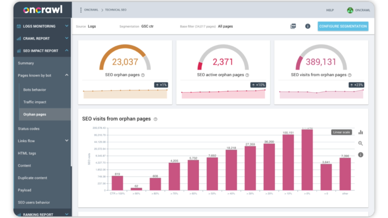OnCrawl is perfect for large e-commerce or enterprise websites that require advanced data analysis and customization in their SEO audits.