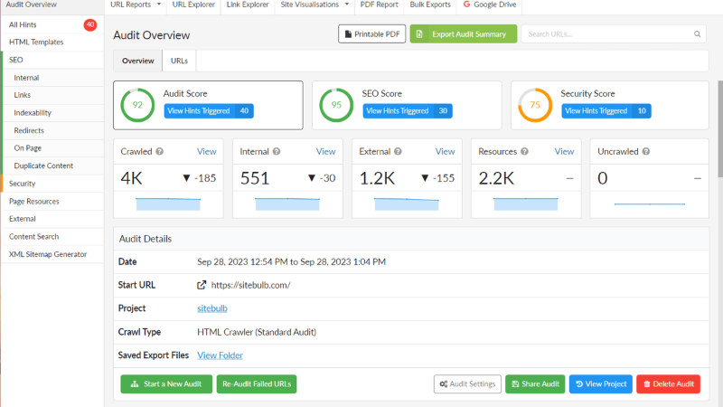 - Visual Reports: Sitebulb generates visually engaging audit reports that simplify complex technical SEO data for better understanding.